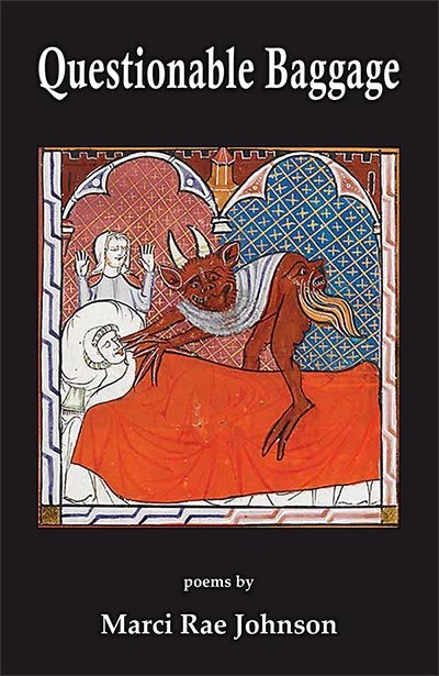In her fourth collection of poetry, Questionable Baggage, Marci Rae Johnson emphasizes the absurdity of our lives. She focuses on trying to remain faithful in the face of ambiguous feelings and experiences we all have—our questionable baggage. Johnson makes the dual meanings of the words “questionable baggage” central to the book. Travelers take “baggage” with them into the future both willingly and unwillingly. Unwilling “baggage” contains the things holding a traveler back or weighing them down. Additionally, Johnson uses the word “questionable” to emphasize the idea that not all of the baggage that we take with us is something that we are proud of.